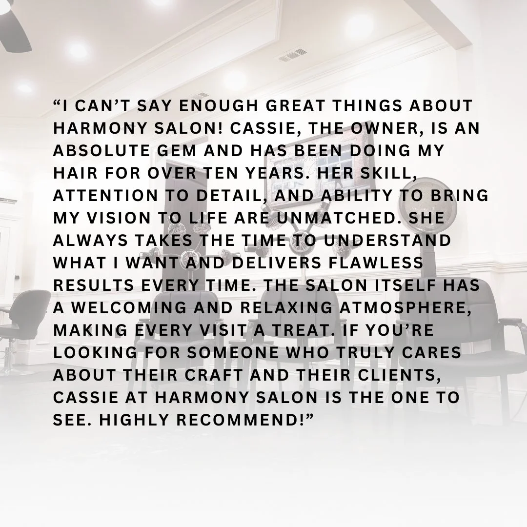 At Harmony Salon Company, we exist to create an atmosphere where both guests and service providers feel valued, cared for, and inspired.